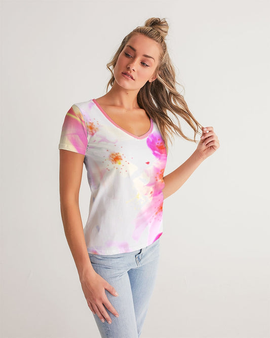 Women's V Neck Shirt - Flower Swirl - Digital Rawness